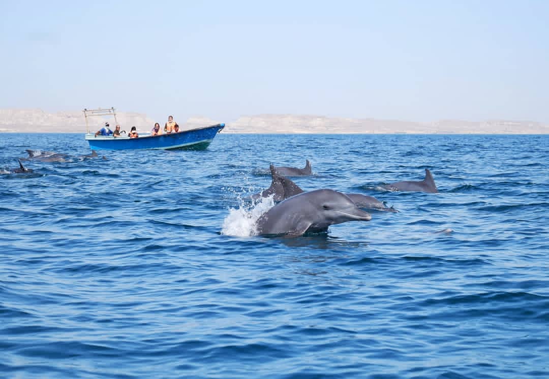 مقصد سوم در گشت ویژه قشم، قایق سواری و بازدید از دلفین های بازی گوش خلیج فارس است. شما تقریبا ۵۰ دقیقه با قایق تندرو به بازدید دلفین ها می روید. بعد از یک گشت و گذار دریایی در ساحل جزیره هنگام پیاده می شوید و می توانید از بازاچه محلی آن سوغاتی و خوراکی های محلی را خریداری کنید. در مسیر برگشت آکواریوم طبیعی با انواع ماهی های رنگی و زیبا و خرچنگ ها را می بینید که در سطح آب در حال شنا هستند.