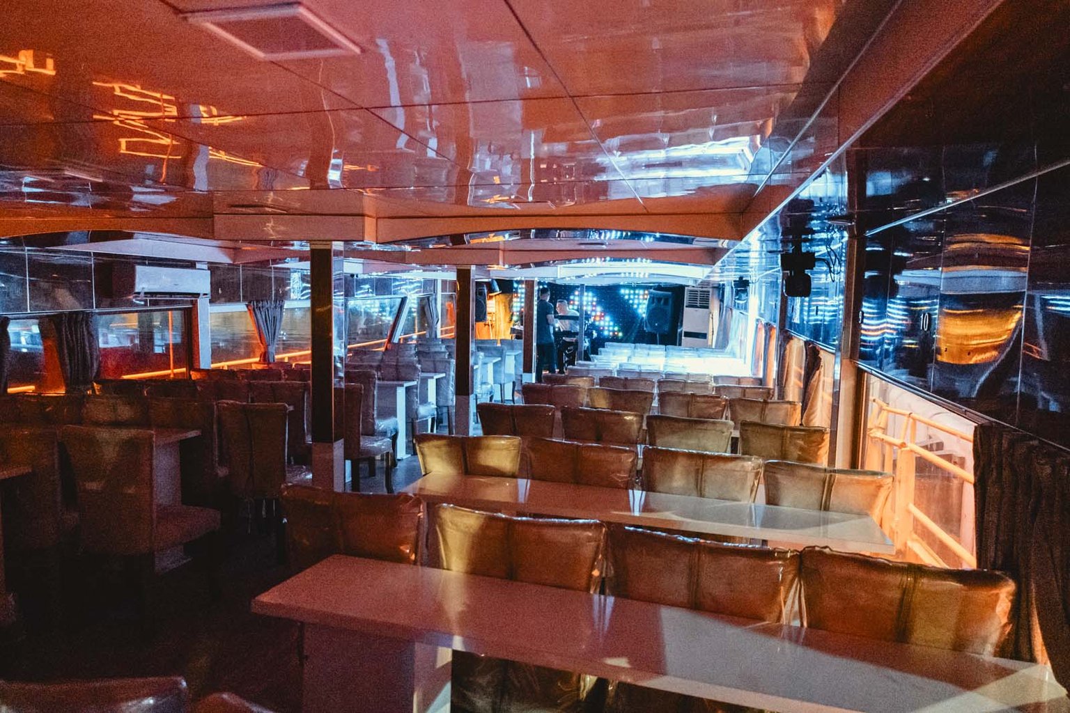 کشتی شامل دو طبقه بوده که طبقه اول سالن سرپوشیده و سالن اجرای موزیک است، طبقه دوم شامل کافی شاپ و فضای باز است. در صورت استفاده از کافی شاپ مبلغ به صورت جداگانه محاسبه می شود. حرکت کشتی راس ساعت و بدون تاخیر صورت می گیرد. برای